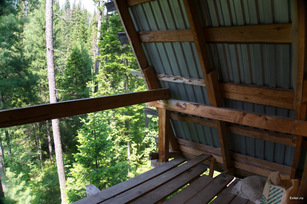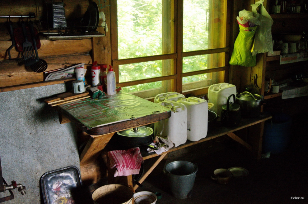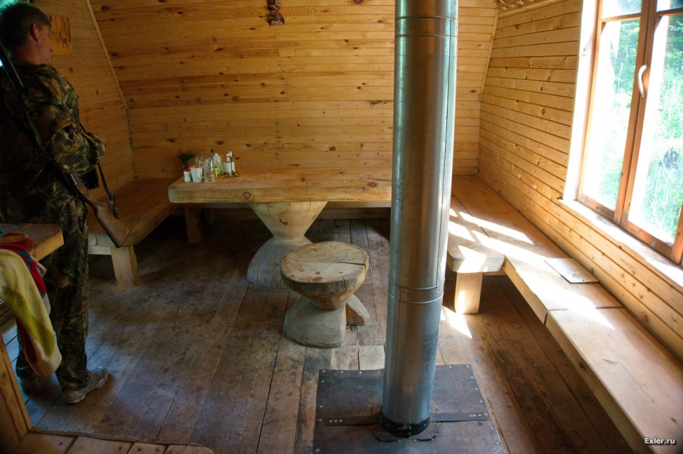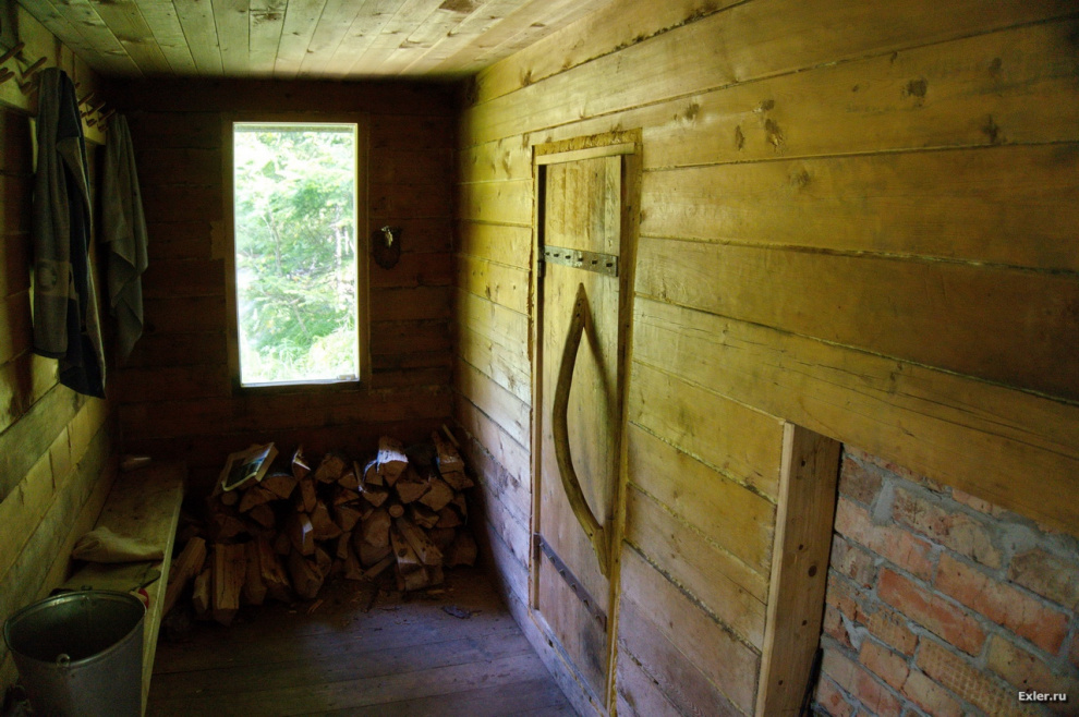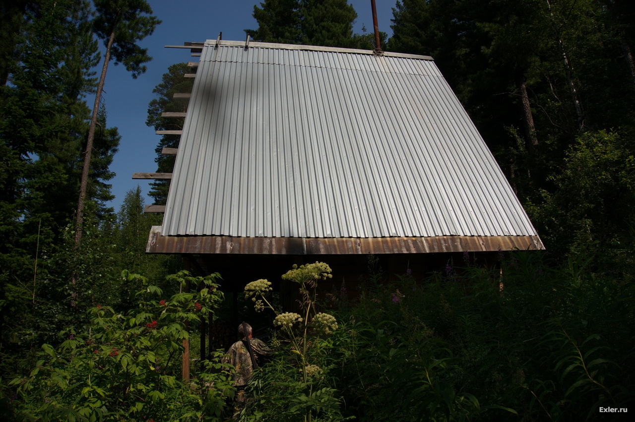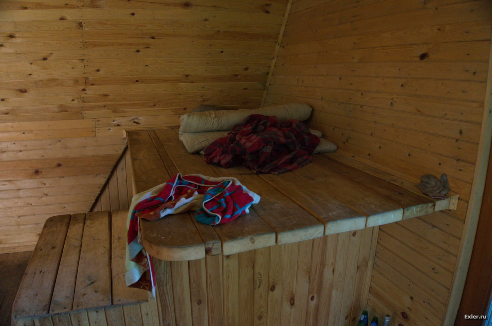 Пришли на место со стороны бани. Ее строили из деревянного бруса, брус перли на себе. Если учесть, что там от дороги идти по лесу где-то минут двадцать конкретно вверх по сопке - задача была более чем непростая.
