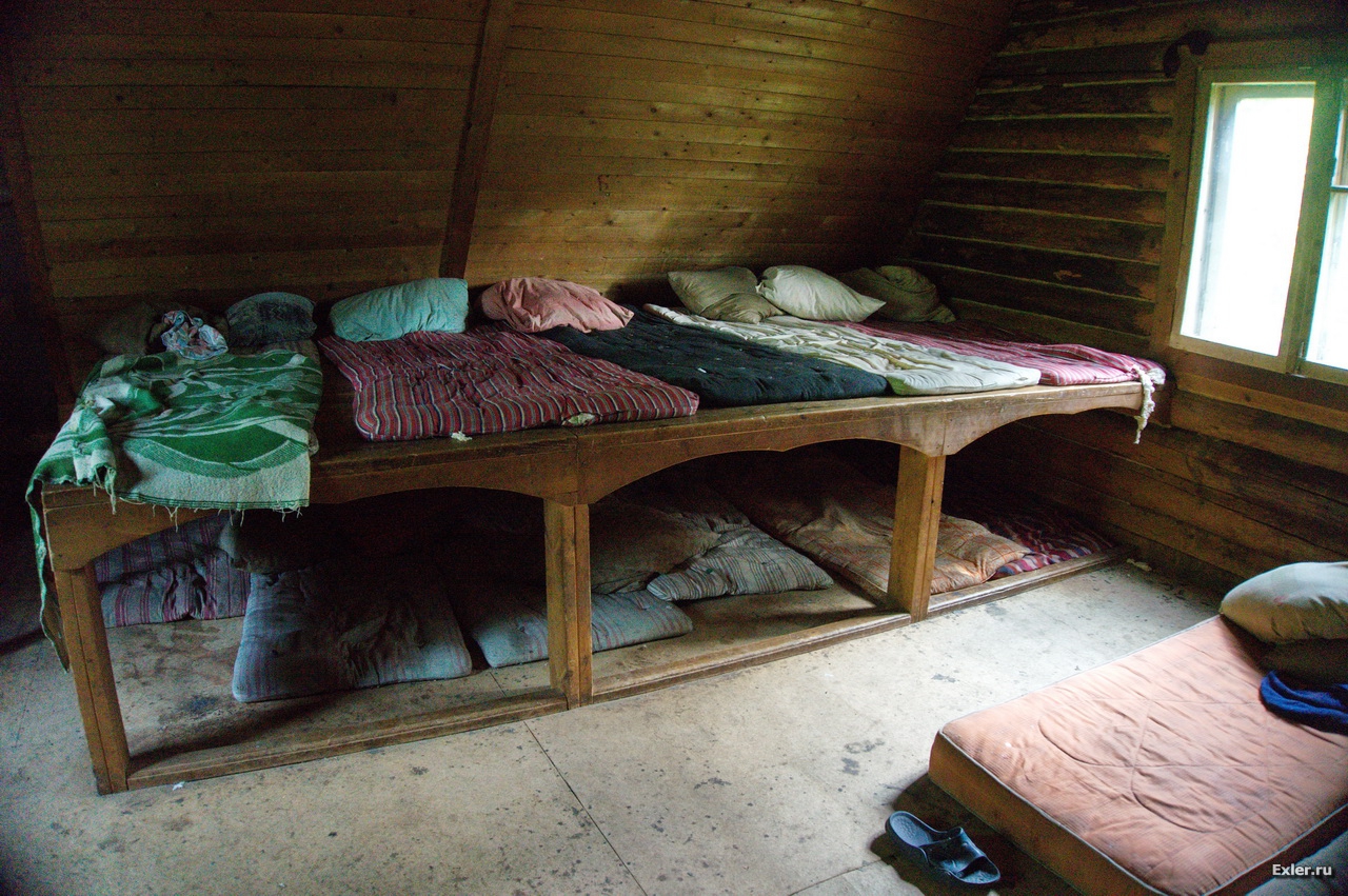 Двухэтажные нары. Говорят, в Избе одновременно ночевало до 40 человек.