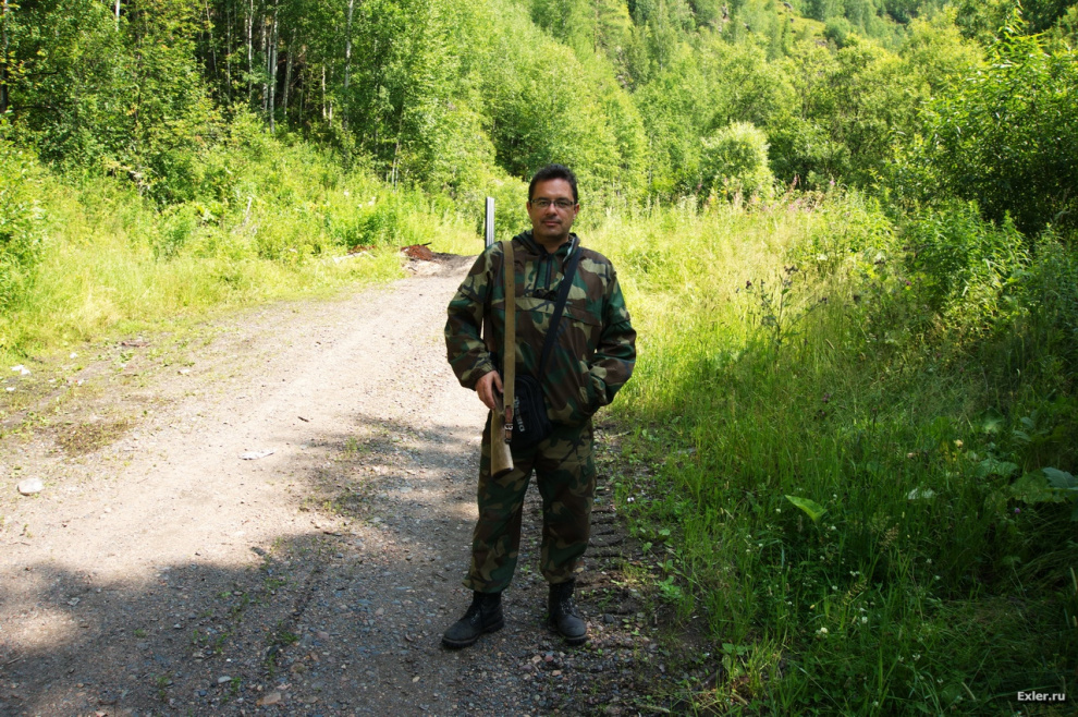 Доехали до места, экипируемся. Мы - люди городские, клещей боимся. Потому что - а ну его нафиг. Без ружья в эти места соваться тоже как-то не хочется - медведей полно, были всякие неприятные прецеденты. В Железногорске медведи даже в город иногда заходят, а кроме того, шакалят по дачным участкам. Не так давно был случай, когда медведь задрал женщину прямо на улице Железногорска.