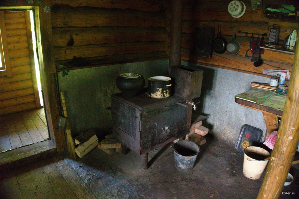 Бревна для избы добывали выше по сопке - так удобнее было их спускать вниз. Зимой бревно мог спустить один человек - волоком на веревке.