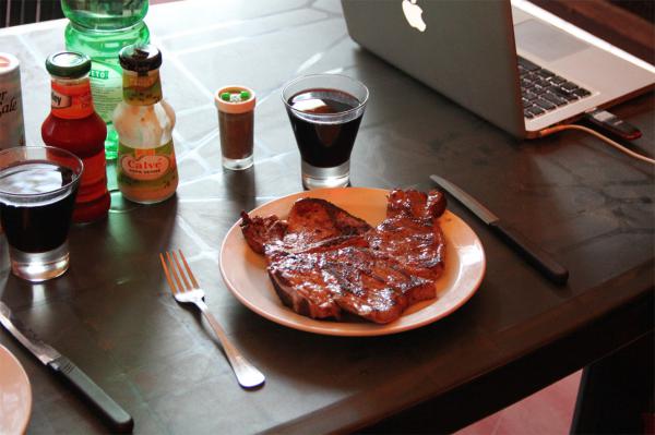 Вечеряло. Бистека фоирентино, оказывается, отлично готовится не только во Флоренции, но и под Пизой, причем и в домашних условиях на хилой сковороде. Получилось очень даже пристойно. Фактически, бониссимо.