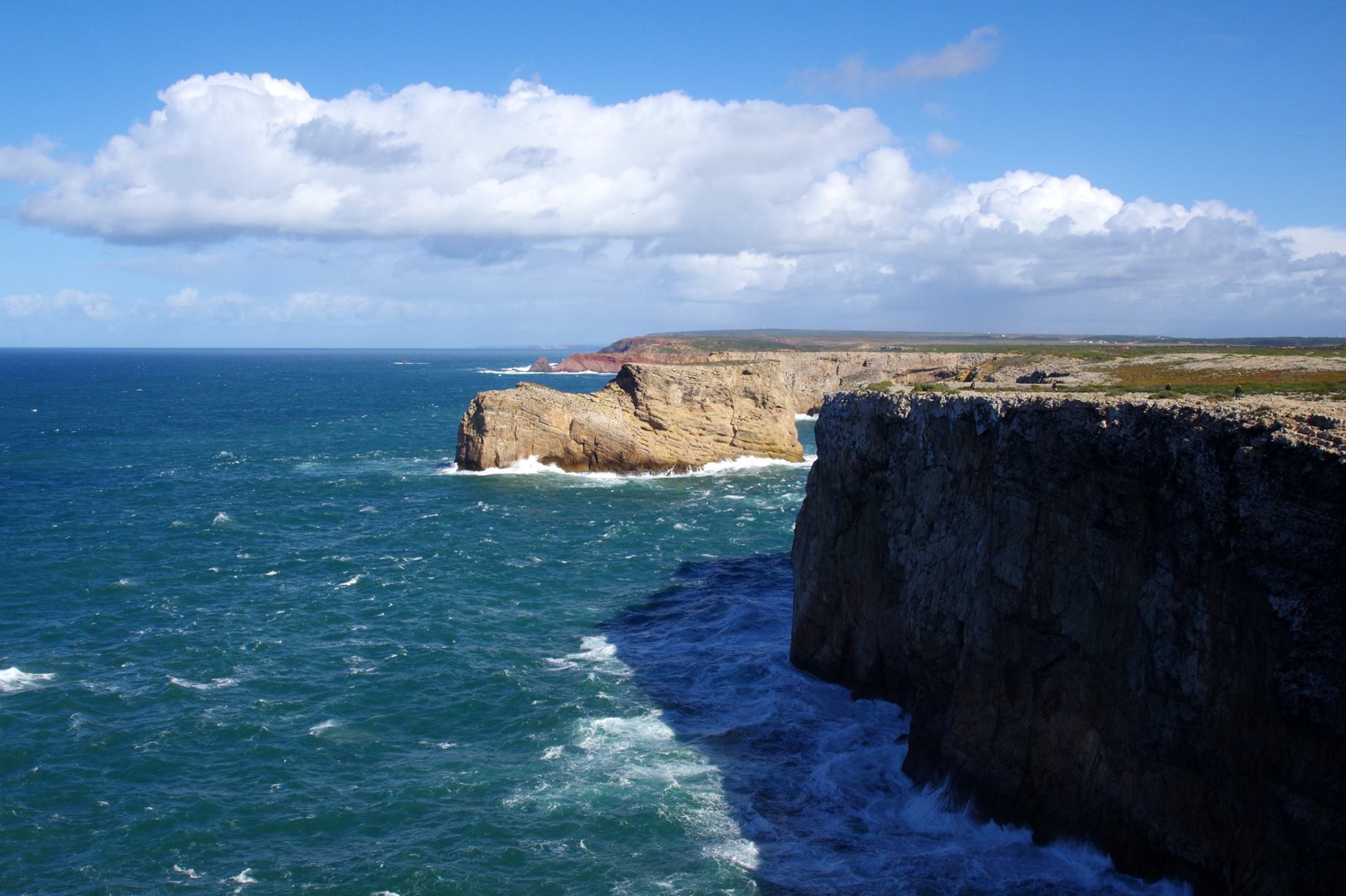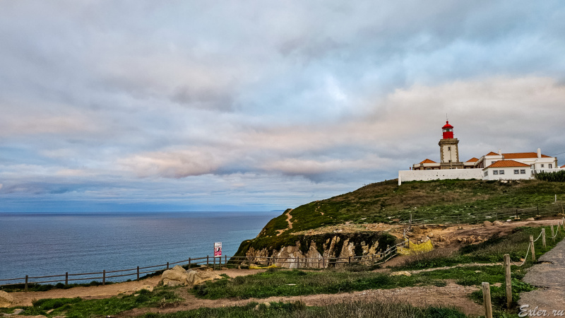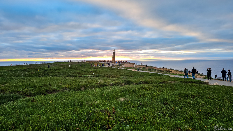 Cabo da Roca - самая западная точка и Иберийского полуострова, и всего Евразийского континента. На самом мысе установлен монумент с крестом на вершине. На монументе висит табличка с бессмертными строками Луиша Камоэнса (голосом Людочки: "Камоэнс"!), который констатировал, что это место, где кончается земля и начинается море. А кто мы такие, чтобы не верить Камоэнсу, правильно?