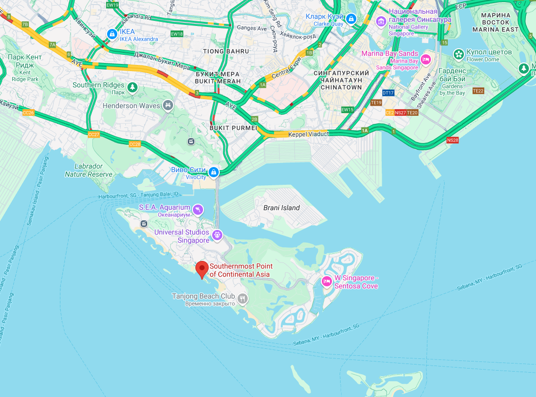 Самое смешное, что и этот островок Палаван не совсем самый южный. Остров Сентоза, к которому он примыкает, простирается ещё немного южнее.