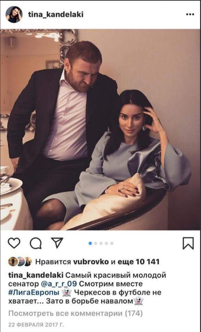 Телеведущая Тина Канделаки в своем Telegram-канале прокомментировала совместные фото с арестованным сенатором Рауфом Арашуковым, отметив при этом, что "всегда знала его как очень общительного и дружелюбного человека". "Не первый день знаю Рауфа, с которым мы по-соседски общались, вместе худели и бегали по утрам. Я всегда знала его как очень общительного и дружелюбного человека. Разумеется, новость о том, что Рауфа Арашукова подозревают в серьезном преступлении, стала для меня печальным сюрпризом", — написала телеведущая. (Отсюда.)