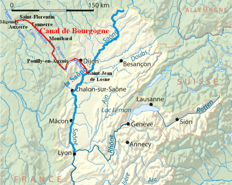 Бургундскому каналу, который начинается в Йонне и имеет длину в 242 километра.