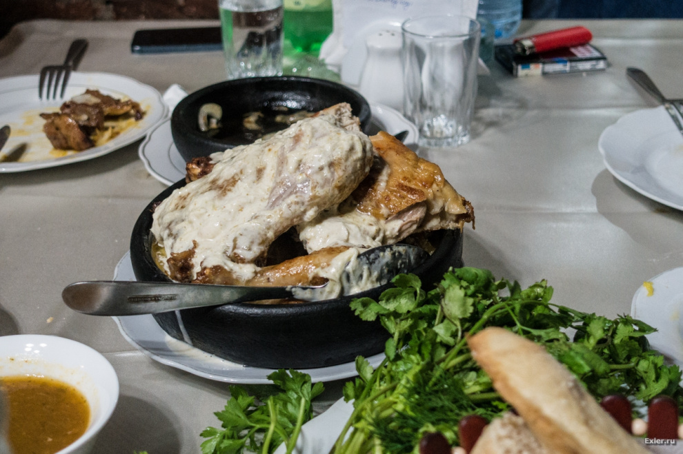 Слева - харчо с орехами, справа - я это название не выговорю. Что харчо, что не выговорю - офигительно вкусно.