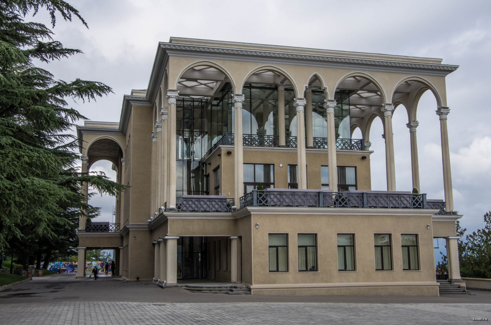 А вот это особняк Иванишвили вместе с его бизнес-центром. Здесь любой бизнесмен может офорить документ, необходимый Иванишвили.