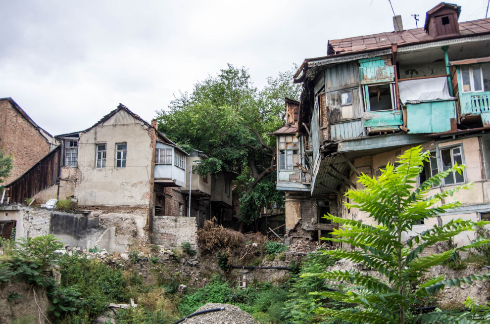 А вот знаменитая тбилисская "Пизанская башня" - здание, стоящее рядом с Театром марионеток Резо Габриадзе.