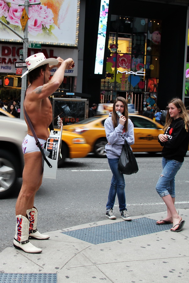 Тот самый "голый ковбой" в Нью-Йорке. Пользуется большой популярностью.