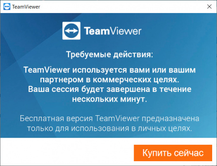 Да, было именно такое. Использовал по работе в тех случаях, когда физически не в офисе. По факту, раза три в месяц. Несколько лет всё нормально и весной началось то же самое. Примечательно, что на моей работе ещё 2-3 человека использовали TeamViewer также и примерно с такой же частотой и у них всё нормально стало. Попросил работодателя оплатить лицензию, для чего создал новый акк, дабы не потерять личный. Сейчас всё норм, платим и радуемся.