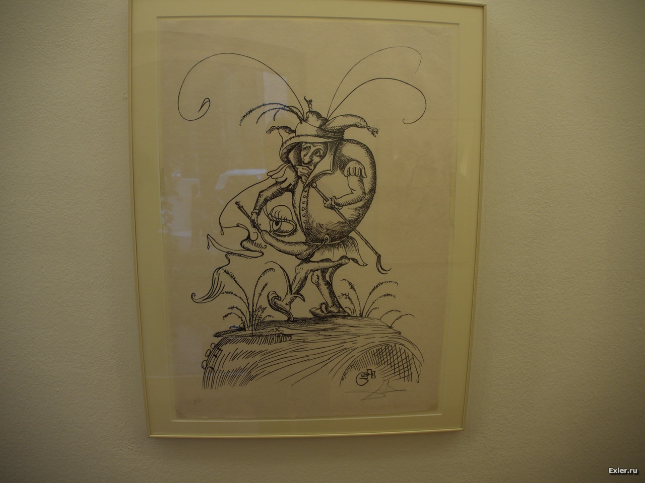 А это склеп с телом самого Дали - да-да, он похоронен в этом музее. В зале со склепом выставляются его ювелирные работы. У склепа тоже обожают фотографироваться туристы, несмотря на то, что там очень темно, а снимать со вспышкой в музее не разрешают нигде. Поэтому я минут десять ждал, чтобы успеть щелкнуть надгробную плиту без "Люся, дивись який я гарний у трупа Дали". Впрочем, большинство фотографирующихся не в курсе, что это склеп, и что здесь захоронен Дали. Кстати, он действительно был маркиз - это звание ему было пожаловано королем.