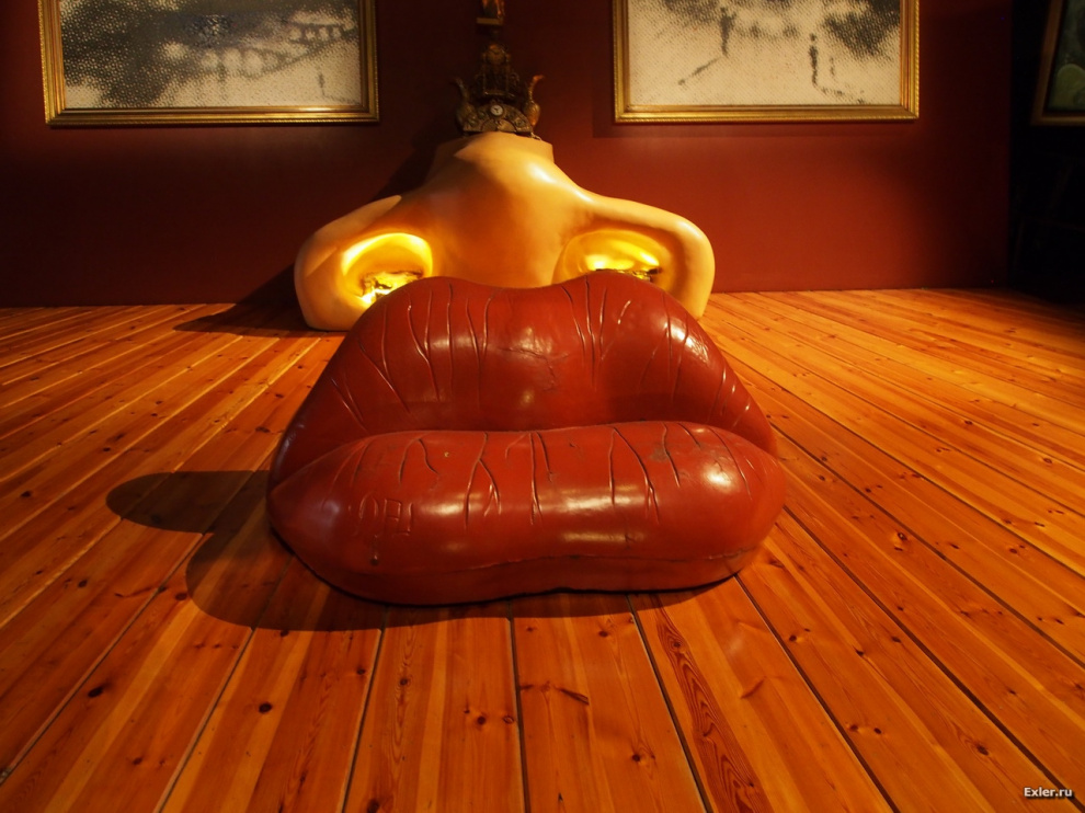 Знаменитейший диван в форме губ, который был сделан для данной инсталляции, но его много раз копировали различные мебельщики.