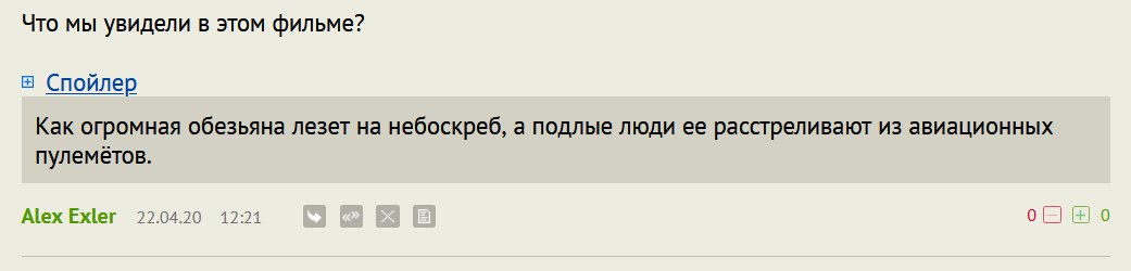 Сделали тэг "спойлер" в комментариях. В основном, пригодится для комментариев к рецензиям на фильмы, но могут быть и другие случаи, когда этот тэг будет полезным. Также под спойлер рекомендуется убирать большие простыни текста, которые вы цитируете.