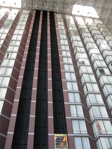 Отель "Омни", куда нас заселили, оказался не только очень даже хороший, но еще и просто -таки впечатляющий. Вот такая картинка открывается из ресепшна, если посмотреть вверх.
