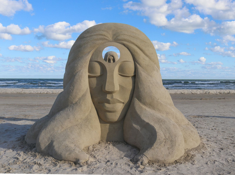 Texas Sandfest - крупнейший в США конкурс скульптур из песка на пляже, вот их сайт в Интернете.