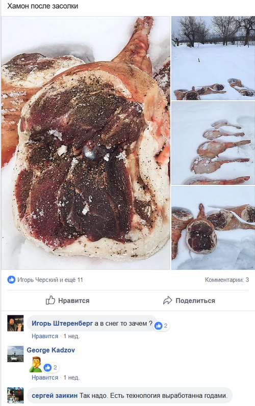 В фейсбучной группе "Жрать здорово" рассказали об импортозаместительном хамоне. Технология, говорят, выработанная годами.
