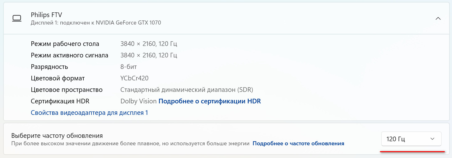 HDMI всегда отстаёт на поколение от DisplayPort, и для 4K@120Hz по HDMI 2.1 нужна уже видеокарта RTX 3000 или RX 6000, хотя предыдущие поколения уже умеют 4K@120 Hz по DisplayPort 1.4.