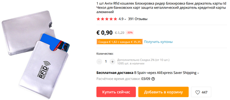 Страшно полезная штука - налетай, там всего 1095 штук осталось, всем может не хватить - металлический чехол для банковских карт.