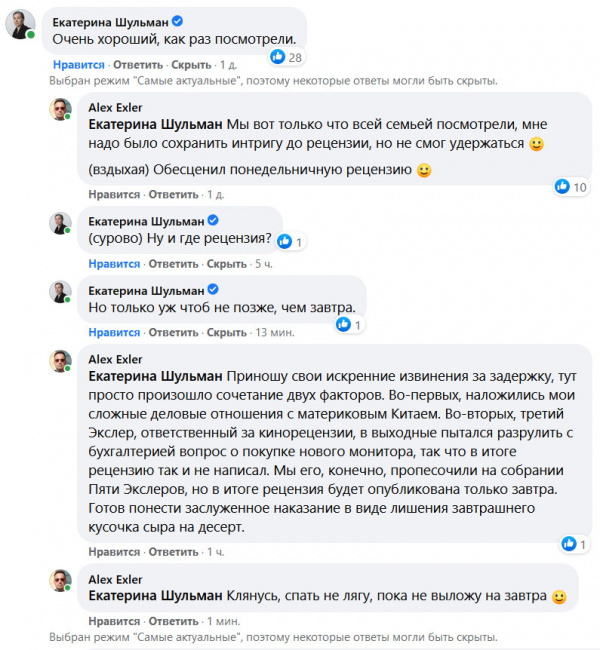 Ну все, теперь от рецензии на "Зверопой 2" не отвертеться, раз такое дело! (Фейсбук сортировать ответы по времени написания не умеет. Ну, понятное дело, чай, не Exler.ru...)