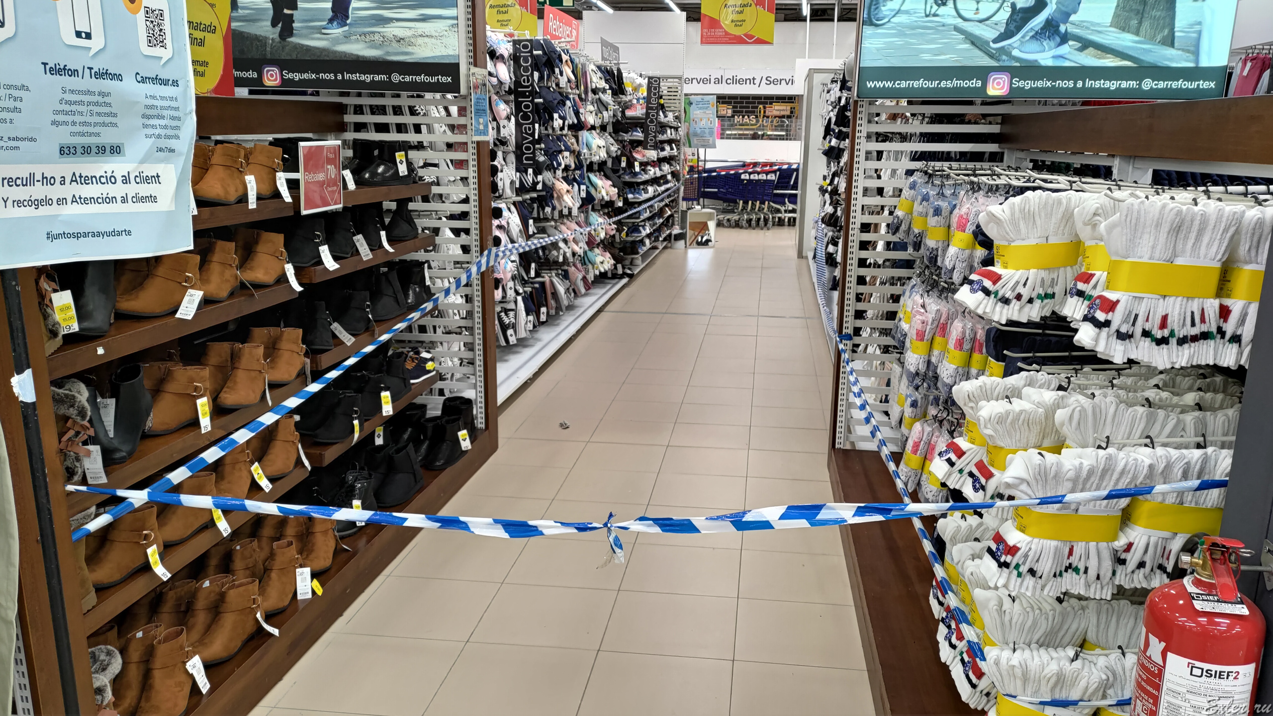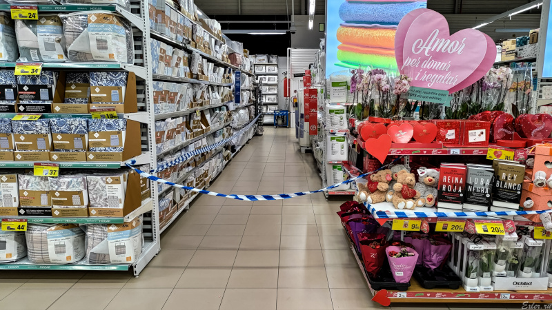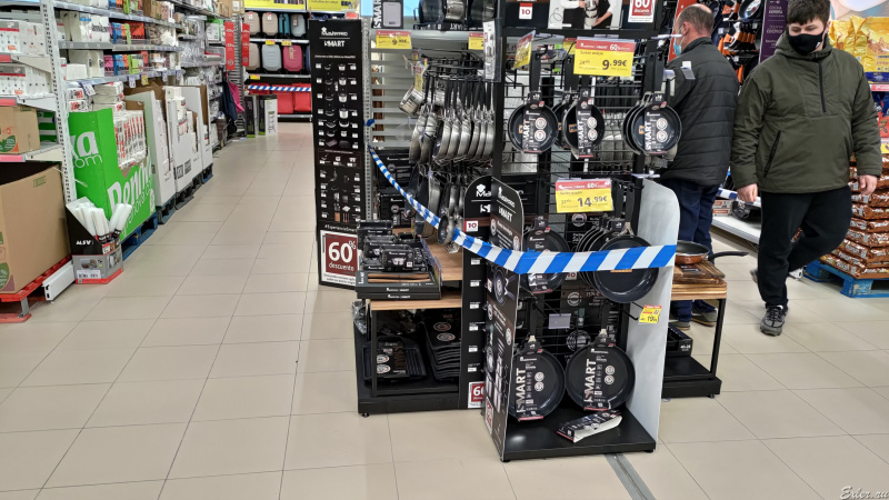 Все по классике! Трусы с носками нельзя покупать, обувь (не всю, а только женские полусапожки), постельное белье закрыли, памперсы и сковородки. Причем сковородки - не все: одна стойка со сковородками закрыта - это та, через которую коронавирус передается, а другая, где устойчивое к коронавирусу покрытие, открыта.