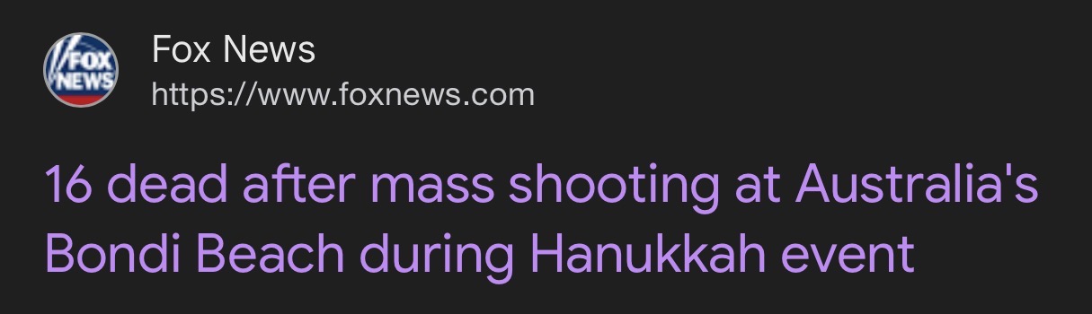 В Сиднее несколько террористов открыли стрельбу по людям, собравшимся праздновать Хануку на популярном пляже Бонди-Бич. Пока пишут как минимум о десяти убитых (среди них есть дети), один из нападавших убит, другой обезврежен и задержан посетителем пляжа.