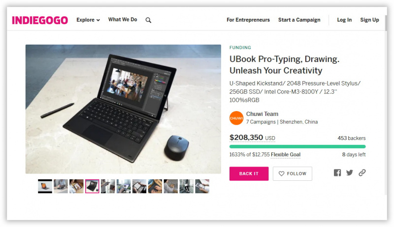Офисная работа требует от персональных компьютеров всё большей вычислительной мощности. В этой связи ёмкость аккумуляторов и автономность работы становятся наиболее актуальными факторами роста производительности. На площадке Indiegogo Chuwi недавно выпустила универсальный планшет 2-в-1 UBook Pro, оснащенный процессором Core m3-8100Y и 12,3-дюймовым экраном с соотношением сторон 3:2. Выпуск планшета поддержали более 450 пользователей со всего мира, и их число продолжает расти.