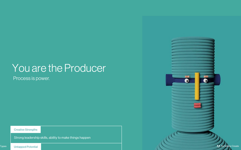 У Димы Чернышёва увидел ссылку на интересный и очень красивый тест от Adobe на ваш креативный тип - mycreativetype.com. На английском, но вопросы не слишком сложные. Правда, за парой терминов пришлось все-таки залезть в словарь.