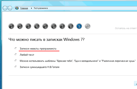 На сайте Itguiz.ru - различная информация о Windows 7 и всякие тесты на знание этой системы с призами. Тесты оказались несерьезными и очень прикольными. А в одном из тестов обнаружилось даже нечто знакомое.