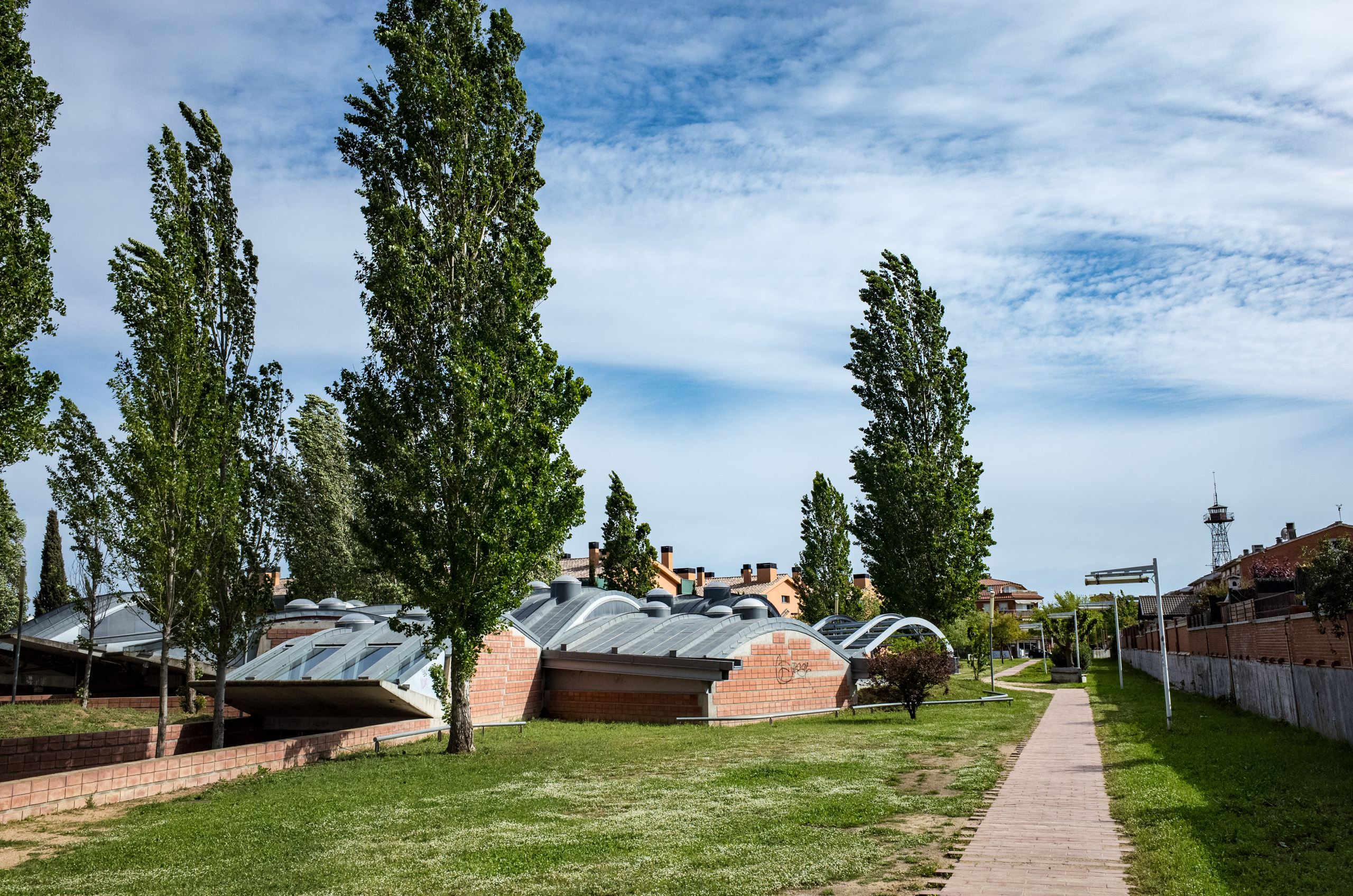 По соседству обнаружилось очень странное сооружение, вкопанное в землю. Как выяснилось, это библиотека. А вот почему её зарыли под землю - непонятно. Видимо, чтобы она не загораживала свет и вид двухэтажным домикам, стоящим по соседству.