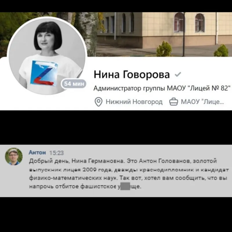 Этой Говоровой на ее странице в VK благодарные нижегородцы, конечно, написали слова поддержки и восхищения ее патриотическим поступком, и она после этого поспешила сделать страницу приватной.