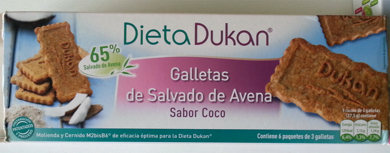 Здесь, в Испании, продаются три продукта, причем прямо указано, что это для дюкановской диеты. Во-первых, просто сами отруби, из которых можно готовить блинчики. Во-вторых, десертные галеты из отрубей - кстати, очень вкусные. В-третьих, что-то вроде хлебцев из отрубей - они тоже сладковатые, как и галеты. Сильно не хватает несладких таких галет, но вот их я тут не нашел.