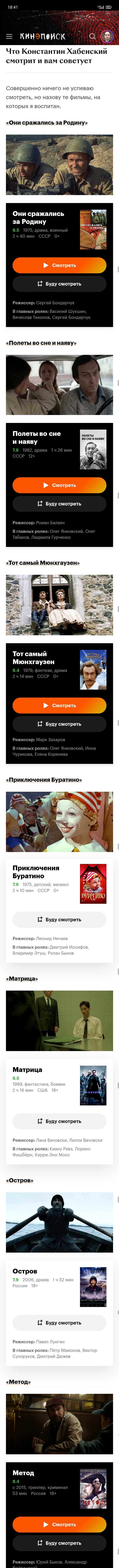 Но список мне был интересен; если бы Хабенский совсем оскотинился, то те, действительно прекрасные, фильмы он бы не назвал.