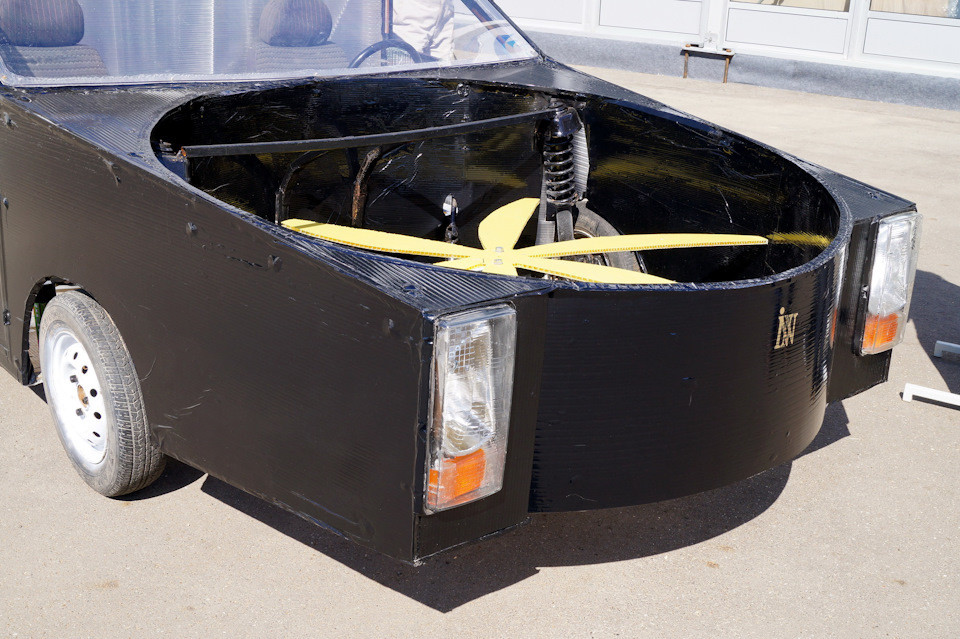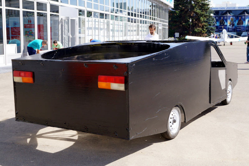Пока представители компании подготовили лишь картонный макет автомобиля. Отмечается, что на кузове летающей машины смонтированы четыре винта, которых должно хватить для подъёма и полёта. Все винты при движении по автомобильным дорогам будут фиксироваться задвижками.