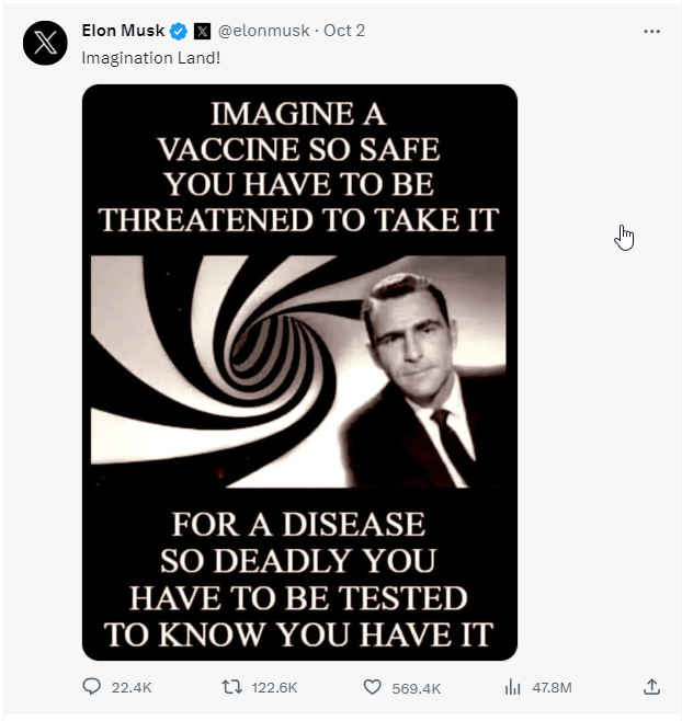 Только лишь подтверждает мою характеристику персонажа. Что Маск "себе на уме" (ну, может позволить, чё уж там), что он со своими "личными тараканами" – и что вовсе тут нет никакого якобы "заговора", всего лишь мнение лично Маска (вообще лично его, честно-дурное, никаких там "наводок со стороны"). И таких дебилов немало, повторю, если вы вдруг забыли... 🙂