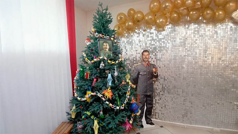 В барнаульском "Сталин-центре" устроили елку в стиле 30-50-х годов со злодеем либералом.