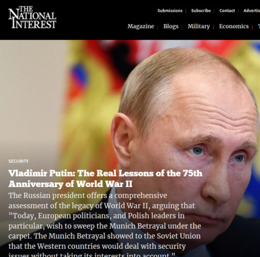 С этой статьей Путина к 75-летию Победы забавно вышло. Точнее, она сама забавно вышла - только на английском (на сайте Kremlin.ru официального русского перевода до сих пор нет) для американского издания The National Interest. Ну, точнее, это так громко называется "американское издание Тзе Нэйшн Интерест", а на самом деле это говногазетка с шестью тысячами подписчиков (видать, посольских заставили подписаться), руководит которой эмигрант Дмитрий Саймас, который зачем-то сменил фамилию на Саймс - видимо, чтобы более по-американски звучало. При этом Дмитрий Саймс нынче живет в Москве и на Первом канале ведет говнотокшоу вместе с Вячеславом Никоновым.
