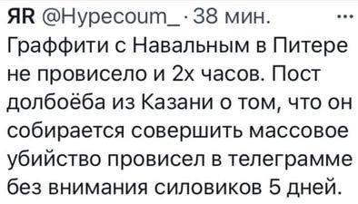 Сегодня утром 19-летний Ильназ Галявиев устроил стрельбу в школе № 175 в Казани, которую он сам окончил четыре года назад. По последним данным, было убито 9 человек, в том числе несколько восьмиклассников. До этого Галявиев писал в своем телеграм-канале о намерении убить «огромное количество биомусора». (Отсюда.)