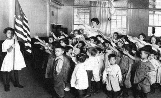 Про салют Беллами , ты конечно же, не в курсе? На, посмотри, как американцы зигуют ещё лет за 30 до Гитлера