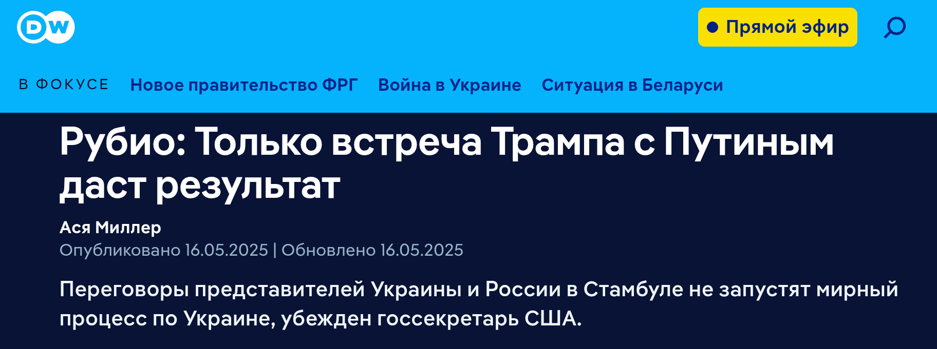 Без прямого участия Трампа и Рубио с Келлогом никакого перемирия и мира не будет.
