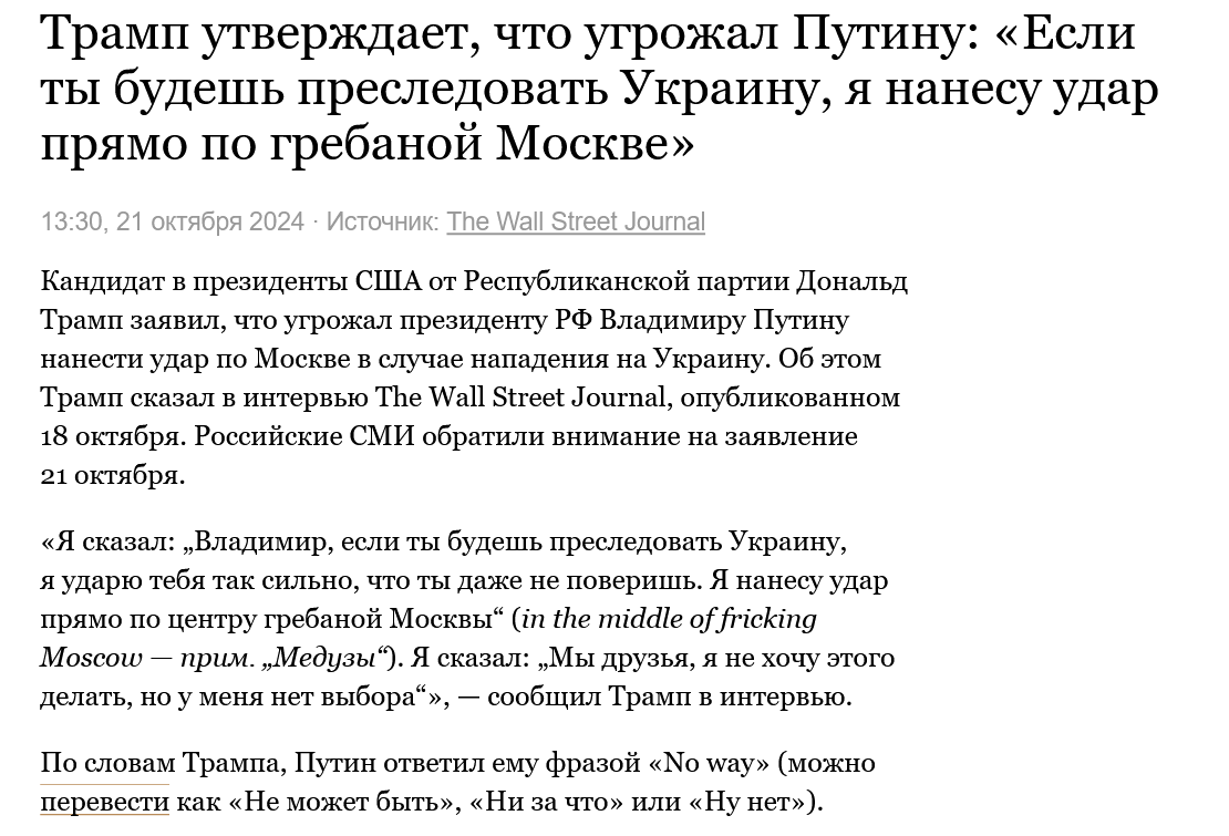 Вот если Трамп проиграет, то вот тогда будет очень серьёзный разговор за деньги, в том числе про личные средства проигравшего, а пока это совершенно не важно.