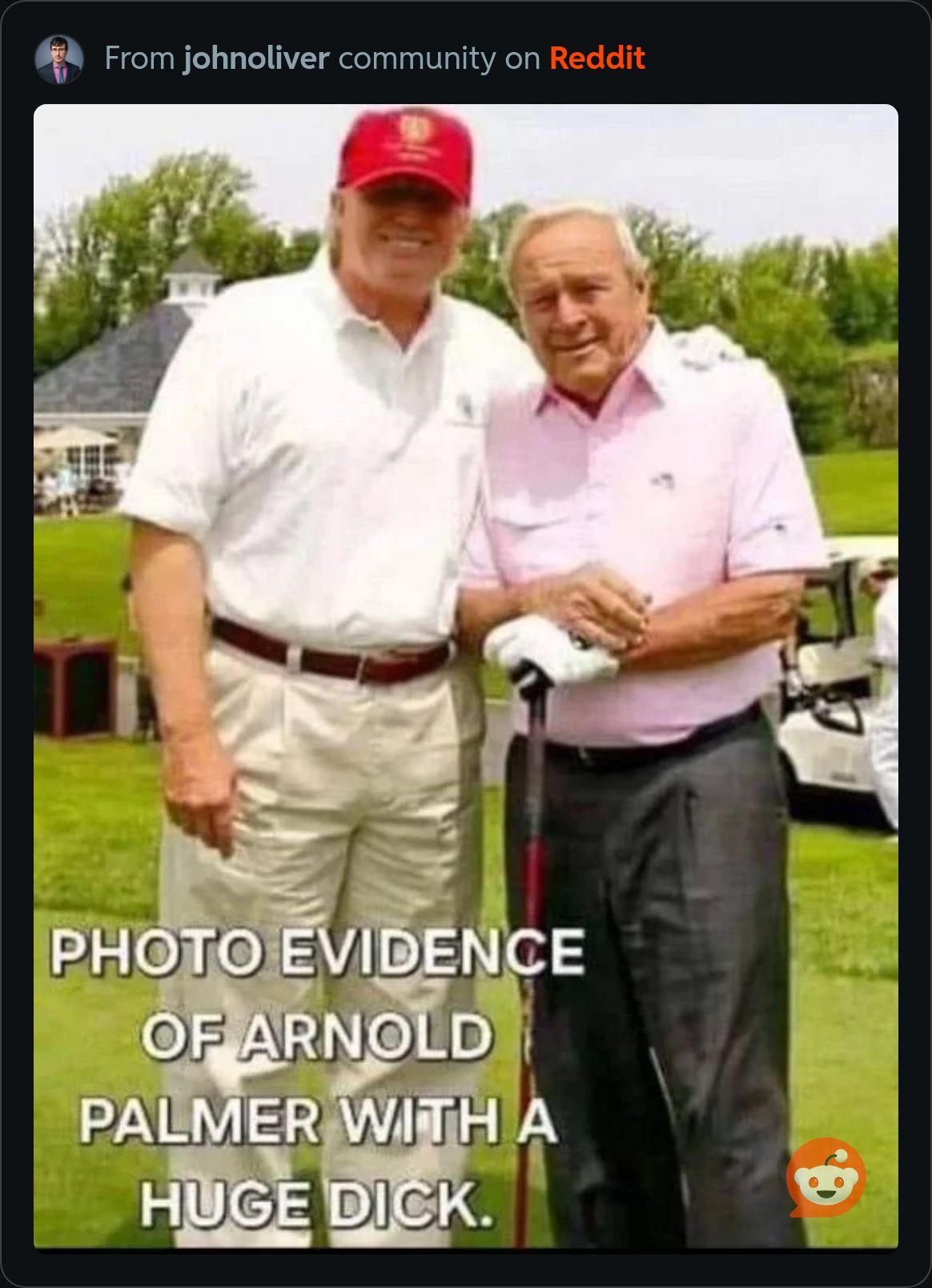 Трамп, по обыкновению, зажигал. Рассказал о гигантском члене профессионального гольфиста Палмера, умершего в 2016 году, обматерил Харрис - в общем, все как обычно.
