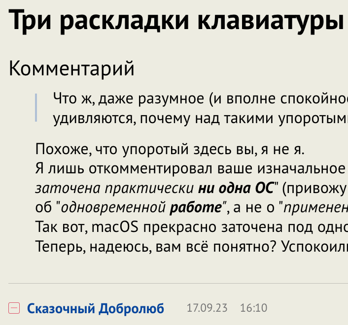 Сам не понял суть сказанного, сам выдумал "обиду", сам возмутился, сам же начал хамить и лезть в бутылку... И всё лишь потому, что его "божественную" ОС не признали "самой лучшей" – и посмели сравнить с другими ОС!