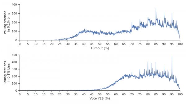 А по Москве не было бы, даже если бы пришли 100% и все проголосовали против. Результаты рисовались (люди для проверки как считалось выносили бюллетени = meduza.io Т.е. речь идет не о том, что докинули голосов "за", а нахер переписали просто ВСЁ на большей части участков