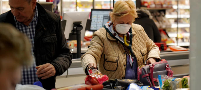 В наших краях закрыли все магазины кроме супермаркетов. В супермаркет пускают только с тележкой - она помогает держать дистанцию. Ручки тележек дезинфицируют доплнительно нанятые люди, охранники помогают. Если приходят супруги вдвоем - тележку каждому. И это действительно помогает - если в очереди к кассе сзади кто-нибудь пристраивается слишком близко, то просто становлюсь впереди тележки.