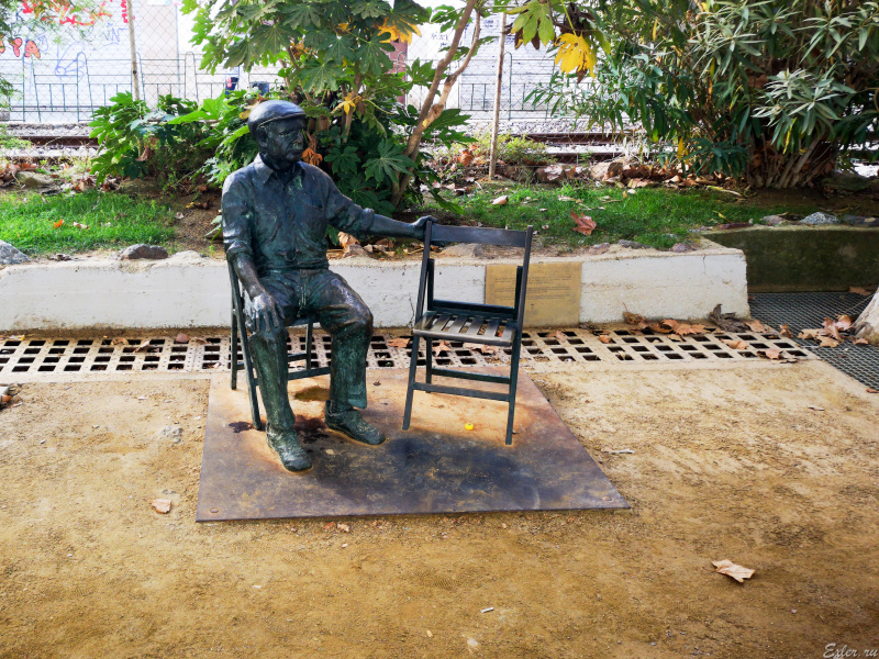В нашем городке в платановой аллее на берегу поставили памятник местным калейским дедушкам. Деды тут действительно примечательные, я о них несколько раз писал. Обычно днем в будние дни они приходят на берег, открывают ящик вот с такими раскладными стульями как на памятнике, рассаживаются кружочком и начинают свои "Пикейные жилеты". Участвует в этом мероприятии обычно человек 12-20, при этом что самое интересное - они говорят очень громко и все одновременно. Со стороны это слушается совершенно психоделически: что они там ухитряются таким образом обсудить - непонятно совершенно.