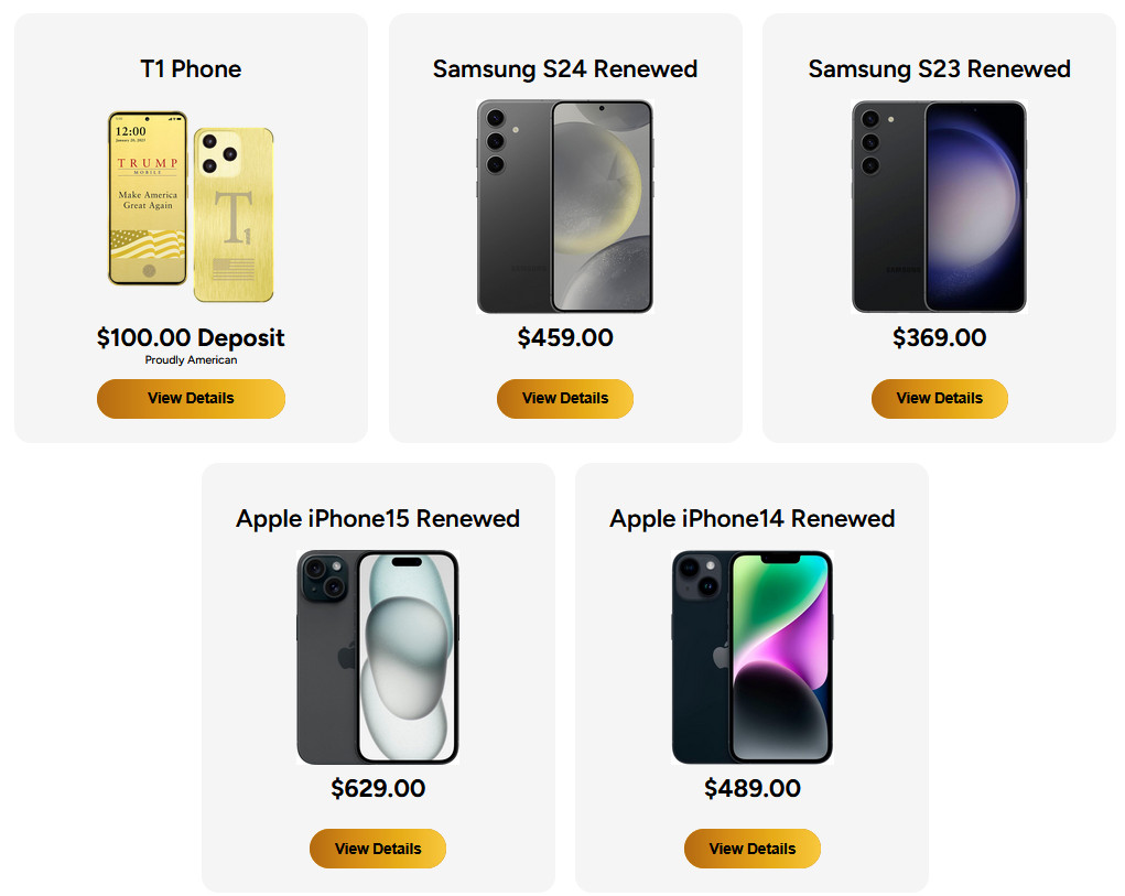 Также есть новости о золотых телефонах Trump, за которые 590 000 человек внесли депозит в размере 100 долларов.