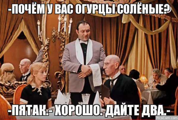 — Стакан воды 1000 рублей. Однако! Стакан сока 5000 рублей. Однако! Да кто к вам с такими ценами пойдёт?! Вы же прогорите!