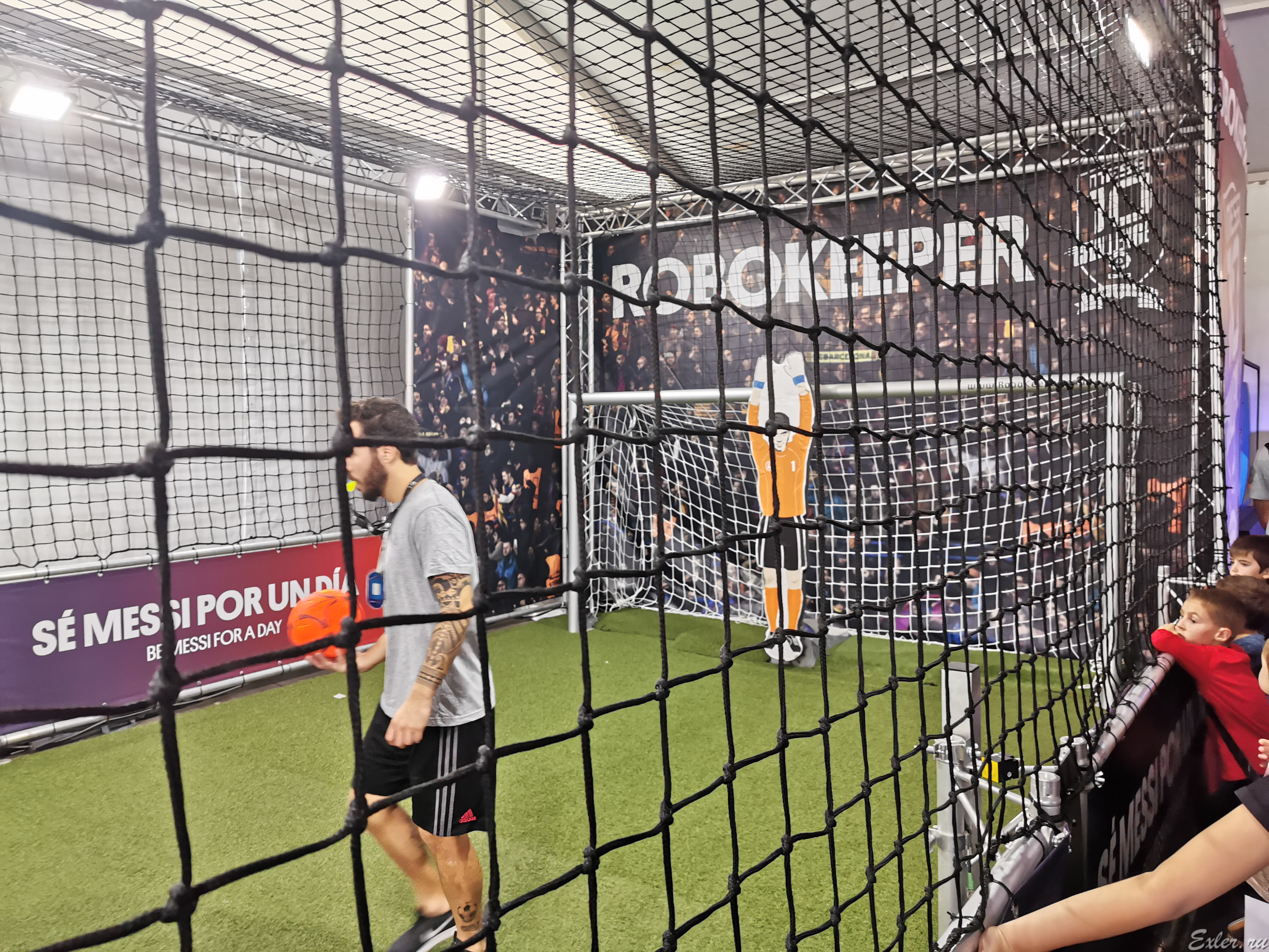 В фойе было устроено несколько аттракционов для детей. Вот здесь, например, нужно попасть в ворота: специальные датчики фиксируют направление летящего мяча и фигура вратаря довольно точно поворачивается на перехват, так что забить здесь было очень и очень сложно. Три удара - пять евро.