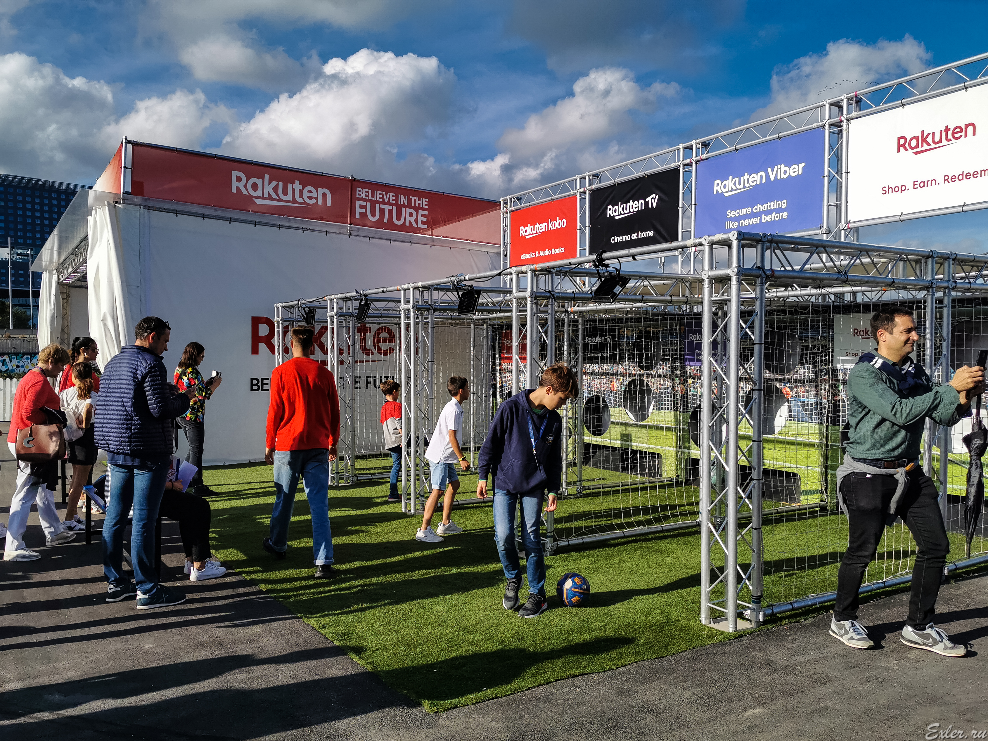 На улице для маленьких футболистов был свой аттракцион: нужно было попадать мячом в соответствующие отверстия. Это уже было бесплатно.