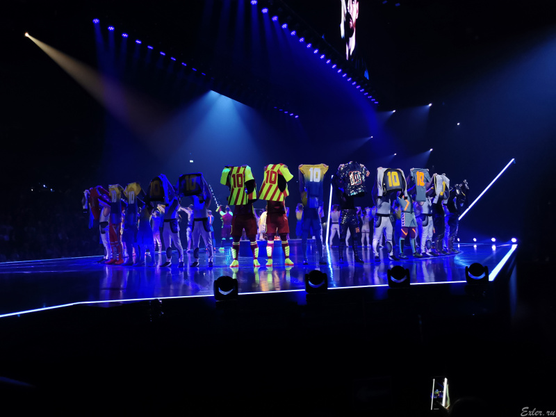 Шоу, разумеется, было посвящено самому Месси и футболу. Эффектные костюмы, всякие танцы, символизирующие те или иные футбольные сущности, цирковые акробатические трюки.